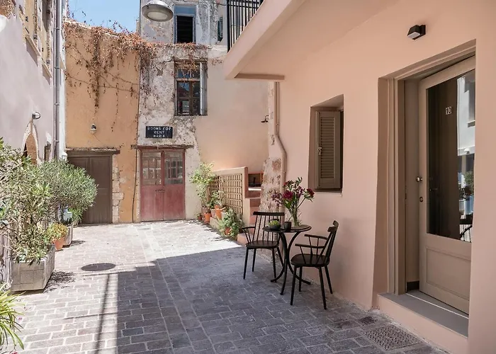 Das 4-Sterne-Hotel Anaem Eclectic Rooms Chania, das eine eigene Kunstgalerie bietet, liegt in einer Entfernung von 15 Gehminuten vom Strand von Nea Chora.